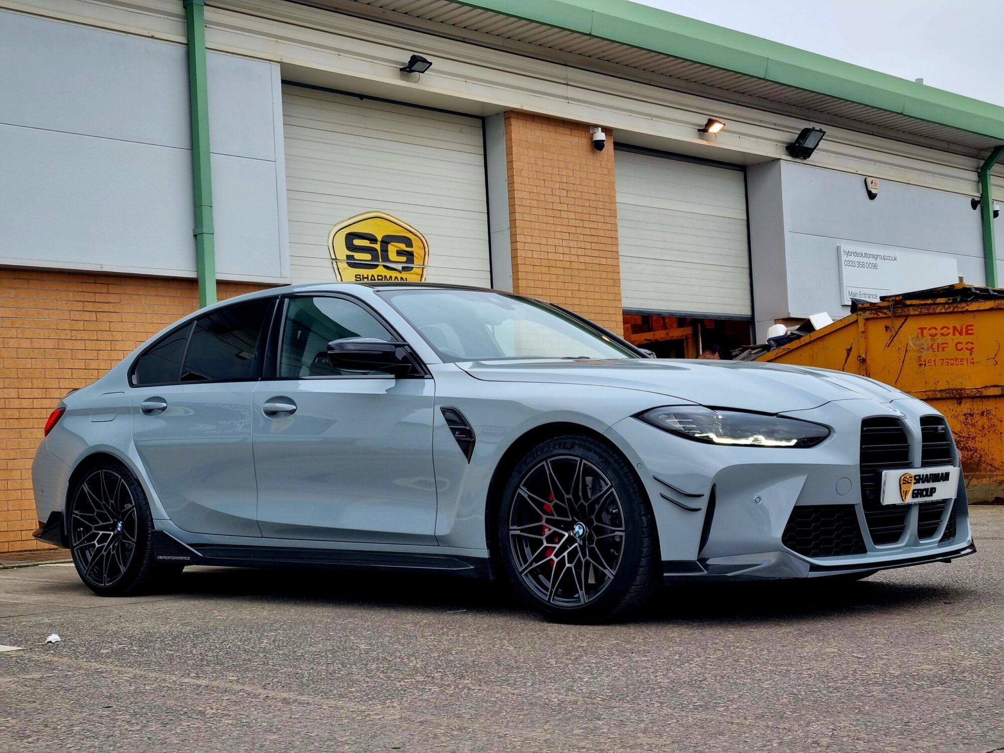 Spectacular BMW M3 Competition xDrive. Finished In Brooklyn Grey With Black-Silverstone Merino Leather, 2 Original keys, Full BMW Service History And A Outstanding Spec Inc: M Performance Kit, Head Up Display, Heated Steering Wheel, Comfort Pack, Drive Recorder, Carbon Inlays, Harman Kardon Sound System, 19in Front – 20in Rear Alloy Wheels – M Double Spoke – 825 – Forged – Bicolour Black with Mixed Tyres, Merino Bicolour Leather – Black-Silverstone, Reverse Camera, Lane Assist, Blind Spot Assist, Wireless Charging Tray, Ambient Lighting, Heated Front Seats, Electrically Adjustable Seats, Driver Memory Seat, WiFi Hotspot, DAB Radio, Apple Car play, Android Auto, Tyre Pressure Sensors, Cruise Control And Much Much More…Every Effort Has Been Made To Ensure The Accuracy Of The Above Information, But Errors May Occur, Please Check With The Sales Executive Upon Enquiry. Part Exchanges Considered. All Major Credit & Debit Cards Accepted. We Offer Various Dealer Facilities Including Servicing, MOTS, Valeting, Detailing, Protective Coatings, Comprehensive Warranties, 5 Days FREE Insurance, HPI Clear And A Full After-Sales Service. Open 7 Days A Week.