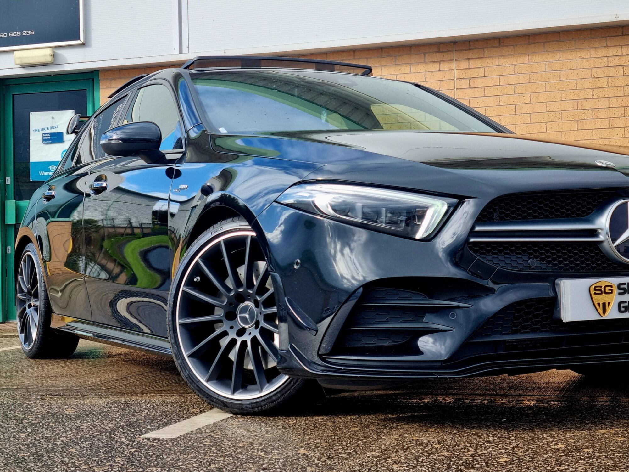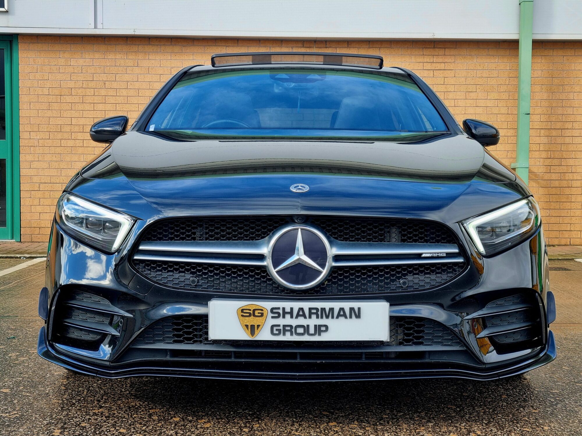 Nationwide Delivery. We Have The Pleasure Of Offering This Absolutely Spectacular Mercedes A35 AMG Premium Plus Finished In A Metallic Black With Black Leather Seats, 2 Original Keys, Full Service History And A Huge Spec Inc: Panoramic Glass Sunroof, Burmester Surround Sound System, Reversing Camera with Parking Guidelines, AMG Aerodynamics Package, AMG Suspension, AMG Style Package, Black Styling Pack, KEYLESS Entry, KEYLESS-GO Starting Function, Reversing Camera with Parking Guidelines, Exhaust System – AMG Sports Exhaust System, Advanced Connectivity Package, 19in Alloy Wheels – AMG Multi-Spoke Painted in Matt Black with a High-Sheen Finish, Hey Mercedes – Voice Activation, Mercedes Me Connect, Wireless Charging, ATTENTION Assist, Active Brake ASSIST, Active Lane Keeping Assist, Heated Front Seats, Alarm System with Immobiliser and Interior Protection – Thatcham Category 1, Mirror Package, Parking Package, Leather Package, Light and Sight Package, MBUX Multimedia System, Seat Comfort Package, Sports Seats, Seats – Electrically Adjustable Front Memory Seats with Lumbar Support, MULTIBEAM LED Headlights with Adaptive Highbeam Assist Plus, Air Conditioning – THERMOTRONIC Luxury Automatic Climate Control – Two-Zone with Display, Cruise Control with Limiter, DAB Digital Radio Tuner, ESP – Electronic Stability Programme with ASR – Acceleration Skid Control, Illuminated Front Door Sills with Mercedes-Benz Lettering, LED Tail Lights, Pre-Installation for Mercedes-Benz Link, Pre-Installation for Private Car Share, Pre-Installation for Vehicle Monitoring, Pre-Installation for Vehicle Set-Up, Privacy Glass, Rain-Sensing Windscreen Wipers , Smartphone Integration, Steering Wheel – AMG Performance, Tyre Pressure Monitoring System And Much Much More…Every Effort Has Been Made To Ensure The Accuracy Of The Above Information, But Errors May Occur, Please Check With The Sales Executive Upon Enquiry. Open 7 Days A Week.